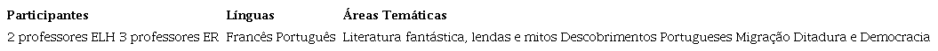 A tabela 1 resume os principais dados do projeto, participantes, línguas envolvidas e temáticas trabalhadas em articulação com o currículo do ER (Currículo 21).
