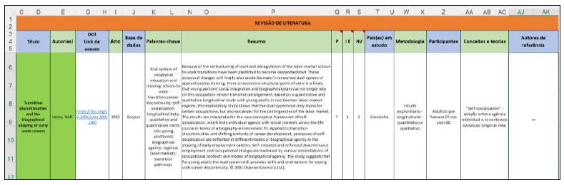 Este processo de refinamento da pesquisa e análise crítica corresponde à etapa de avaliação da qualidade (3.), de acordo com Toronto e Remington (2020) e realizou-se com apoio de software (Excel). Para tal, criou-se uma tabela, parcialmente ilustrada através da Figura 2, na qual foram inseridas informações relativas ao título, autor(es), ano de publicação dos artigos selecionados, hiperligação de acesso, bem como o resumo e respetivas palavras-chave. A análise crítica dos estudos em questão concretizou-se através da leitura integral dos mesmos e registo de informações sobre: