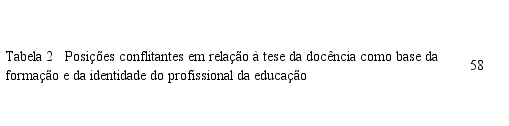 Posições conflitantes em relação à tese da docência como base da formação e da identidade do profissional da educação