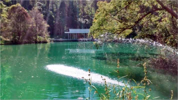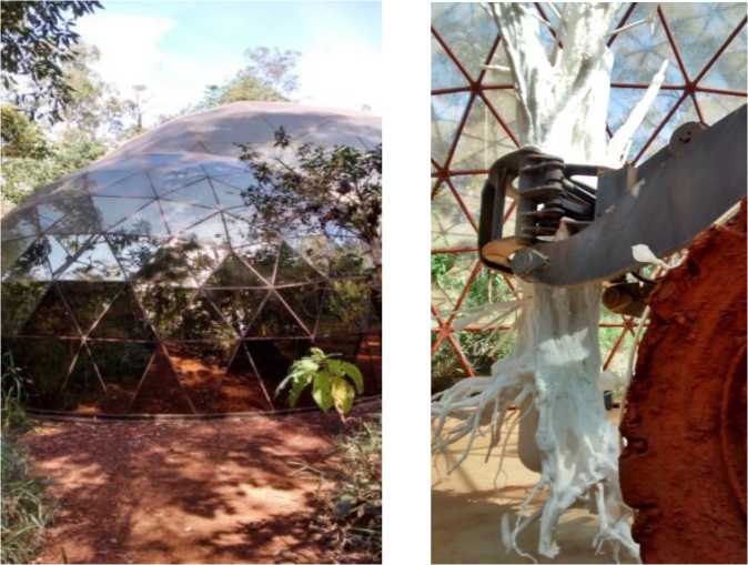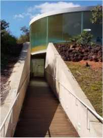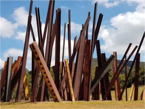 O meio ambiente natural, no Instituto Inhotim, é mais que um espaço expositivo para as obras ou coadjuvante nas narrativas artísticas propostas. Trata-se de um interlocutor capaz de alterar trajetórias e construir diálogos. Cria, com a obra de arte, uma relação sinestésica, de tal forma que a atmosfera local respira essa interlocução, tecida a partir de relações visuais, sonoras e sensíveis, convidando o espectador a um mergulho nesse ambiente rico em possibilidades estéticas. Desta forma, a abordagem que o espectador terá com a obra de arte é influenciada pelo meio ambiente natural, constituído pela paisagem e, quanto ao meio ambiente artificial, composto pelas estruturas arquitetônicas do Parque, como segue na Fig.3.