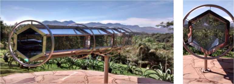 A escultura Viewing Machine (2002-2008), é a “Máquina de Ver” do artista dinamarquês Olafur Eliasson (1967, Copenhagen, Dinamarca). A escultura assemelha-se a um caleidoscópio. Etimologicamente, a palavra "caleidoscópio" é formada a partir das palavras gregas kalos (bela), eidos (forma) e scopos (observador): "observador de belas formas". A obra foi feita em aço inoxidável, com seis espelhos dispostos internamente numa estrutura hexagonal, numa espécie de tubo, que se encontra no alto de uma colina. Para Pelaes (2017), o visitante é convidado a manobrar a máquina em direção a um ponto de interesse, e através de reflexões sobrepostas, um mosaico de formas é composto, proporcionando a percepção da luz e do movimento. Vide figuras 10 a 12.