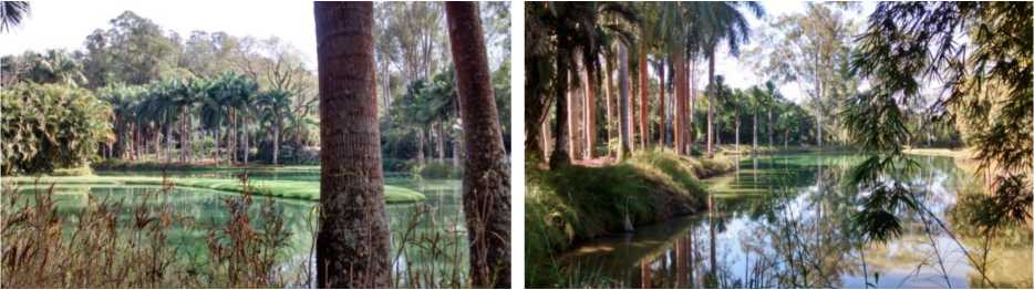 O paisagismo teve a influência inicial de Roberto Burle Marx (1909-1994) e em toda a área são encontradas espécies vegetais raras, cinco lagos e uma reserva de mata preservada (Pelaes; Stori, 2016). Cabe ressaltar que a coleção de palmeiras é uma das mais completas do mundo e contém espécies raras, como pode ser observado nas figuras 1 e 2, a seguir.