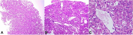 In conclusion, EAML is an uncommon variant of AML and is a close mimicker of renal cell carcinoma, particularly when there is intravascular spread of tumor cells in EAML. Pathologically, a carcinoma-like growth pattern in absence of adipocytic components may further add to erroneous diagnosis. Though rare, it is prudent for the treating surgeon to consider differential diagnosis other than renal cell carcinoma when confronted with a renal neoplasm presenting with intravascular thrombi. In these cases, a core biopsy should be planned pre-operatively and diagnosis should be made with aid of appropriate immunohistochemical markers.