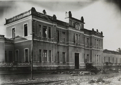 Essas duas instituições possuíam laboratórios que poderiam ser utilizados nas aulas práticas do curso de Farmácia, já que, por decreto nº 921 de 20 de fevereiro de 1926, ficava determinado que “[...] os cursos de Farmácia e Odontologia terão caráter puramente experimental e de aplicação” (Sergipe, 1926, p. 126). Por esse motivo, o curso de Odontologia foi instalado em outro prédio da vanguarda arquitetônica aracajuana, o Hospital de Cirurgia. Observemos a Figura 4: