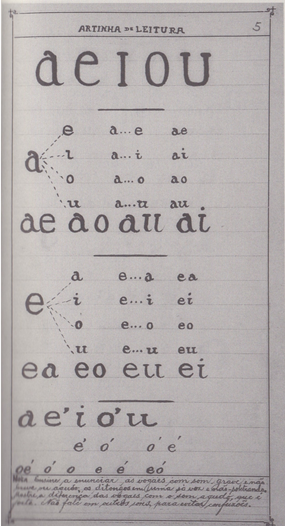 Nesse sentido, interessa revelar alguns aspectos da relação entre a proposta metodológica e a gráfica. Tais propostas são singulares no manuscrito de Artinha de leitura, especialmente quando comparadas a outras produções didáticas da época, incluindo aquelas recomendadas e utilizadas nas escolas gaúchas, quais sejam: Cartilha maternal, de João de Deus; Cartilha nacional, de Hilário Ribeiro; Cartilha Samorim e Cartilha mestra, de Samorim Gustavo de Andrade, bem como os livros de leitura de Abílio César Borges.