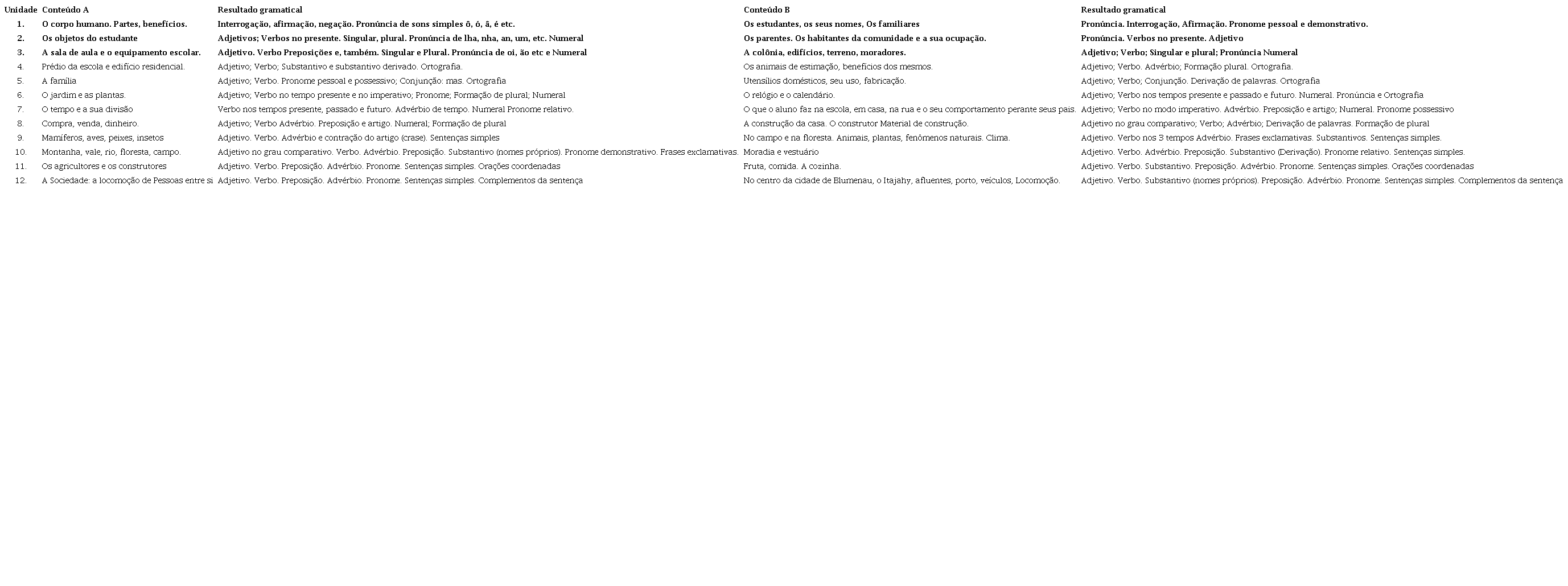 Realizamos a tradução do alemão gótico para o português na tabela 1 abaixo por sua relevância na discussão do presente texto, a fim de trazer o conjunto de procedimentos, unidades e os conteúdos para o ensino do português; nesse percebe-se a importância em se introduzir a língua portuguesa nas escolas: