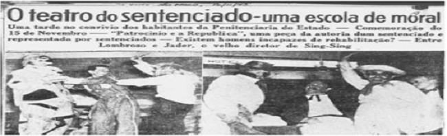 No cárcere, Abdias Nascimento encontra um projeto de gestão da penitenciária, a qual tinha como diretor e idealizador o médico Flamínio Fávero, que visava regeneração dos presos a partir da inserção de atividades laborais e artísticas na rotina carcerária. Nessa proposta, foram incluídas inúmeras atividades culturais, dentre as quais o teatro. Fazendo da tragédia da prisão uma oportunidade, Nascimento liderou a criação do Teatro do Sentenciado. A estreia do grupo teatral, noticiada pela imprensa paulista (Figura 3),