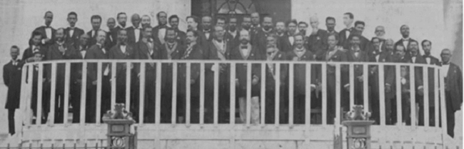 Segundo Marcelo Mac Cord, deve-se dar destaque ao vestuário dos consócios da SAML, no momento da captura da fotografia: o uso de casacas, peça de distinção social da época, mas que também separava o homem de cor livre do mundo da escravidão (Mac Cord, 2012, p. 408).