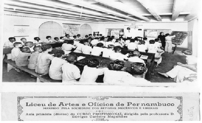 O projeto do Liceu de Artes e Ofícios veio ‘de cima’, efeito da própria relação com os poderes públicos que foi tecida pelos trabalhadores negros do mercado de edificações. O antigo ‘liceu provincial’ chamava-se Ginásio Pernambucano, na década de 1870, e foi mantido pelos poderes públicos, sem qualquer relação com o Liceu de Artes e Ofícios. A nomenclatura adotada pela instituição a cargo da Sociedade dos Artistas Mecânicos e Liberais possibilitou, inclusive na tentativa de legitimação institucional com a congênere carioca, o ‘Imperial Liceu de Artes e Ofícios da Corte’. Naquela altura, na década de 1870, presidentes da província ocupavam os altos cargos da associação e articulavam, na política provincial, os rumos da associação e das acomodações das aulas (Mac Cord, 2012).
