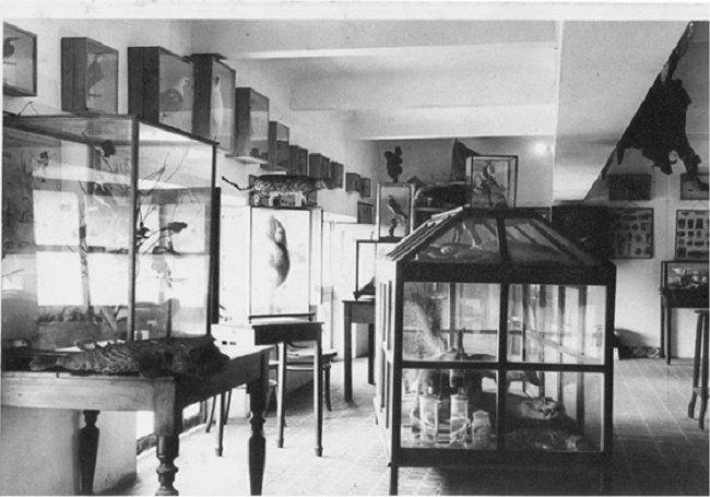 Na Figura 05, Museu do Liceu, observamos uma sala ocupada por peças taxidérmicas (empalhadas). O empalhamento, maneira como animais são montados para exibição ou estudo, é uma técnica mais barata e simples de taxidermia - de aves, peixes, mamíferos etc., os quais são dispostos para exibição ao público. Analisando a materialidade da cultura escolar, Margarida Louro Felgueiras refletiu sobre o significado das atividades da preservação do patrimônio educativo para a historiografia da educação, bem como acerca da divulgação do conhecimento e dos museus. Conforme a autora, foi no contexto das exposições universais que os primeiros museus de educação emergiram e se popularizaram. Os museus escolares, com suas coleções de materiais sobre ciências da natureza, dados etnográficos, de geografia natural e humana, adequavam-se às propostas das lições de coisas, cujas orientações didáticas se voltaram para a instrução através do uso dos sentidos (Felgueiras, 2011).