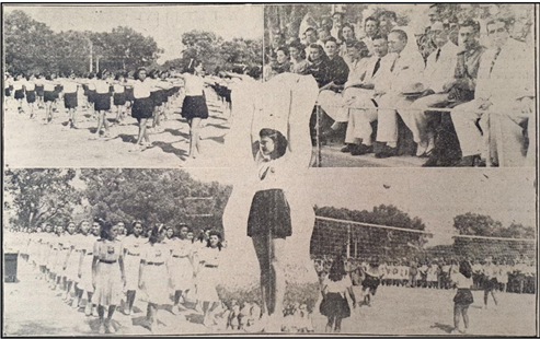As festividades cívicas e o canto orfeônico, mas também a Educação Física, faziam parte das estratégias nacionalistas de construir o abrasileiramento integral pela educação da juventude, como visualizamos na Figura 1. Buscava-se despertar nos alunos um sentimento nacionalista, pois “Os que aqui nasceram, não nasceram para servir a outras pátrias, nem para cultivar outras tradições, nem para alimentar outros sentimentos [...]” (Ramos, 1939, p. 8). Tentava-se minimizar, ou mesmo anular, sentimentos de desagregação pela ligação emocional, cultural ou de qualquer outra ordem com a nação de origem (Schwartzman, Bomeny, & Costa, 2000).