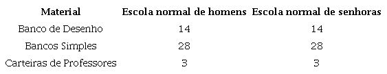 Quando se tratava de preparar um a mobilia escholar, remetia-se ao artista encarregado da obra uma tabela de preços, sem as necessárias explicações.