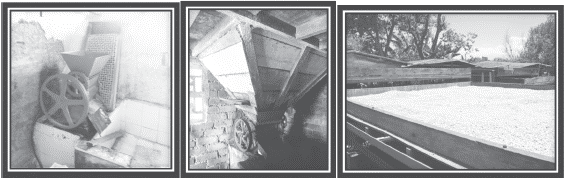 Los objetos del proceso productivo, que incluyen despulpadoras, tolvas, elbas (figura 7), zarandas, básculas, fumigadoras, entre otras herramientas, siguen siendo útiles y están presentes en las fincas cafeteras, aunque a veces cambian sus funciones y usos. Otros instrumentos, como los arietes y las fumigadoras antiguas, a veces se guardan como elementos recordatorios.