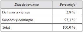 Los días de consumo de la gastronomía se presentan en la tabla 4. De acuerdo con los resultados, Salitre es un destino visitado casi en su totalidad (97,3 %) los fines de semana (sábado y domingo). Se evidencia que los fines de semana son los días preferidos para degustar la comida tradicional ecuatoriana. Resultados parecidos se obtuvieron en los trabajos de Orden et al., (2017) y Carvache, Carvache y Torres-Naranjo (2017).