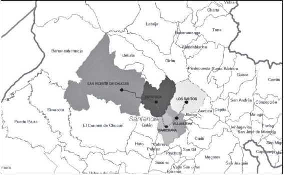 El departamento de Santander posee una división administrativa definida por municipios, pero aún sigue predominando en el imaginario de sus habitantes una división en provincias. Esta división dejó de existir cuando la Constituyente de 1936 produjo la desaparición legal de las provincias como entes de orden administrativo, aunque, como señala Gustavo Pinzón (2007, pp. 296 y 297), "se mantiene solamente en el recuerdo de sus moradores y como costumbre para precisar la diversidad geográfica y cultural del departamento". Las provincias que integran el departamento de Santander son seis: Soto, García Rovira, Guanentá, Comunera, Vélez y Mares. La ruta pasará por municipios ubicados en tres de esas seis provincias: Los Santos, provincia de Soto; Villanueva y Barichara, provincia Guanentá; y Zapatoca y san Vicente de Chucurí, provincia de Mares. En tres de estos municipios (Los Santos, Barichara y Zapatoca), el turismo es bastante fluido, porque son espacios muy conocidos y promocionados por su variada oferta turística, lo que de cierta forma facilitaría el recorrido. Por su parte, Villanueva y san Vicente son espacios de poca afluencia de turistas, excepto en las fechas de sus fiestas y ferias, pero esta ruta gastronómica podría incentivar el turismo en estos municipios.