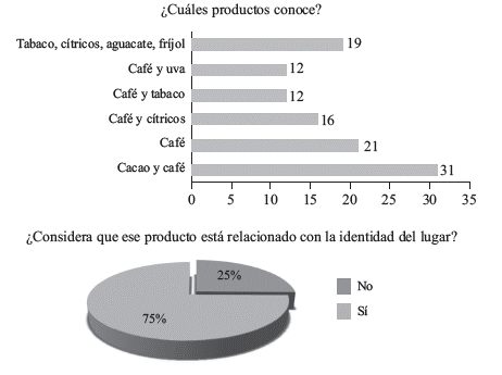 También se ha logrado establecer que el turista identifica claramente los productos como el café orgánico, el cacao y, en menor medida, el cultivo de la uva y la producción de vino con el lugar de procedencia. Al tomar estos alimentos como referentes culturales en relación con el lugar de origen, esto conduce a revalorar nuestro vínculo con un lugar, a volver la mirada hacia un elemento que históricamente ha fortalecido las identidades: el territorio. Pero esto debe darse no solo en un sentido de pertenencia por el hecho de haber nacido allí, sino como proveedor del alimento fuente de vida en torno del cual se han creado diversas representaciones simbólicas y rituales que envuelven todo el proceso de siembra, recolección, transformación y consumo del alimento. Se sabe que la identidad ha trascendido las fronteras territoriales, pero el origen del concepto de identidad se encuentra con frecuencia vinculado a un territorio (Molano, 2007). Hoy más que nunca es necesario contar con elementos que fortalezcan ese vínculo identitario con el territorio y con una mirada de lo local, y no dejar que los efectos de la globalización conduzcan a la pérdida de la propia identidad como país y como región.