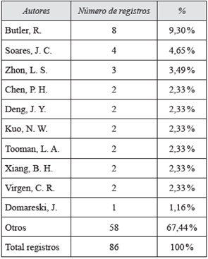 El 69,77 % de las publicaciones están representadas por otros 60 autores con publicaciones individuales, aportes teóricos, metodológicos y estudios empíricos.