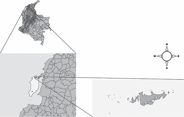 El archipiélago del Rosario, en el Caribe colombiano, es parte del departamento de bolívar y de la ciudad de Cartagena, y está compuesto por 31 islas e islotes. Junto con el archipiélago de San Bernardo, conforma el área protegida Parque Nacional Natural Corales del Rosario y San Bernardo (PNNCRSB), declarada así en 1977 (pineda et al., 2006), cuya ubicación se muestra en la figura 1. El archipiélago del Rosario incluye arrecifes de coral franjeante, praderas de pastos marinos, lagunas costeras, litorales rocosos y arenosos, bosque seco tropical y manglares, los cuales, a su vez, son los ecosistemas priorizados como valor objeto de conservación por parte de Parques Nacionales Naturales de Colombia (PNN) (Díaz, 2000; Pineda et al., 2006).
