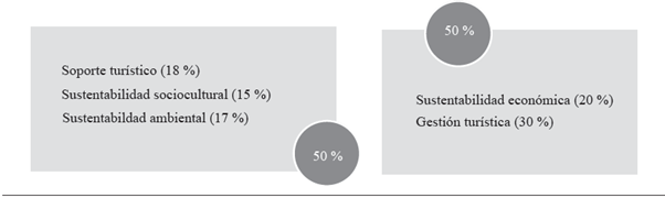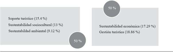 El grado porcentual relativo de competitividad del sector turístico del Área Metropolitana de Bucaramanga es de 74.27 %, valor compuesto como se indica en la figura 2: