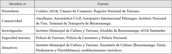The process interpreted the results obtained through instruments applied during 2016 to a group of tourism service providers (Bucaramanga Chamber of Commerce CCB, 2016) of the Metropolitan Area of Bucaramanga who were active in the National Tourist Registry and People directly related to the public and private management of the different areas covered by the indicators contained in the platforms of the system of competitiveness indicators of Minen (Minen, 2008).