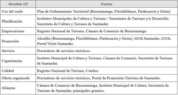 Plataforma compuesta por factores que facultan al destino para tener un manejo gerencial eficiente e innovador, orientados al cumplimiento de metas y generación de beneficios para la comunidad local. Esta plataforma abarca temáticas gerenciales, productivas y de calidad (MinCIT, 2008). Las principales fuentes de información fueron:
