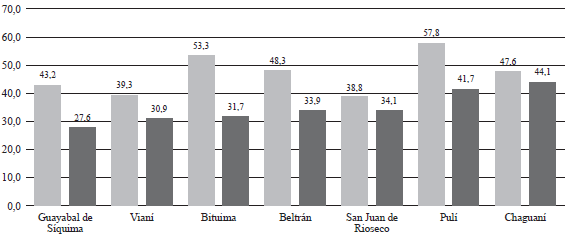 Al realizar el análisis de la provincia del Magdalena Centro, se distinguen los altos índices de pobreza, como se muestra en la figura 1.