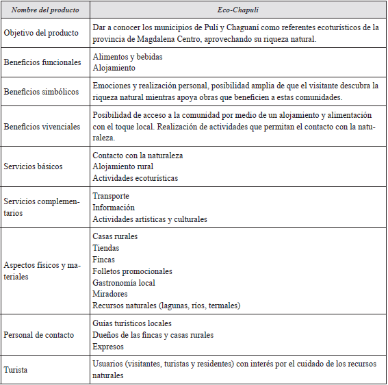 Con referencia a lo anterior y a la confirmación de la riqueza cultural y natural existente en Pulí y Chaguaní, se establecieron dos subproductos para los cuales se tomaron las potencialidades turísticas de los municipios, incorporando a la población y permitiéndole obtener un beneficio a corto plazo, referido al aporte económico que dejará el visitante. A largo plazo, en obras sociales, además de cambiar la imagen de forma positiva, se requiere generar un aporte económico y nuevas alternativas laborales.