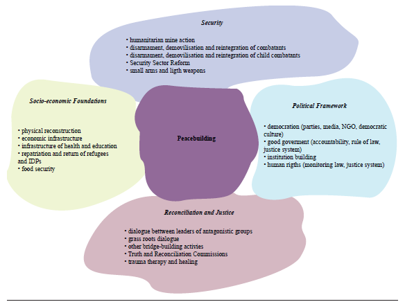 Para el caso colombiano, los procesos de reconciliación y el papel del Estado, como responsable de los resultados finales de los acuerdos y las negociaciones, deben avanzar en la elaboración de una política pública, la cual ha sido ya formulada como la Política Nacional de Reintegración Social y Económica (PRSE), que busca asegurar la superación de la condición de desmovilizados por medio de los siguientes componentes: