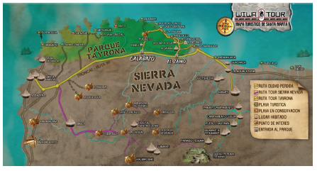 En la Sierra Nevada, el turismo hasta Ciudad Perdida [...] ha estado organizado por agencias que contratan a sus guías entre los antiguos trabajadores que acompañaron a los arqueólogos en la exploración de sitios prehispánicos a partir de 1976 o entre los campesinos vecinos que viven cercanos al resguardo Kogi-Arsario, el cual es necesario cruzar para llegar al parque arqueológico. (Guilland y Ojeda, 2012, p. 128).