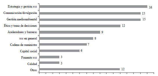 [...] en 20 años se han escrito 524 artículos, los cuales han sido agrupados en doce categorías: acciones poco éticas (93), ¿qué tan éticos somos? (49), ¿cómo hacer lo correcto? (79), valores de la empresa (17), códigos de ética, lo necesario y cómo desarrollarlos (75), ética para educadores del turismo (5), enseñando ética (38), ética del turismo (60), tendencias, problemas y desafíos (24), responsabilidad corporativa (38) y prácticas verdes (32). (Peña y Sierra, 2012, p. 1.465).