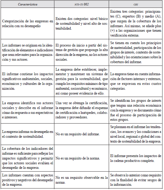 En primer lugar, comparativamente el Código y la Guía poseen semejanzas en relación con su interpretación por medio de un contexto global. Así mismo, la Norma se ha convertido en un referente a nivel local en relación con los elementos que el sector hotelero colombiano conoce y coincide con los lineamientos generales que el Código formula. Por otro lado, estas dos últimas iniciativas propugnan el desarrollo de una responsabilidad social especializada para el sector, lo que contrasta con una propuesta que busca la homogeneidad en las distintas actividades económicas por parte de la GRI. Otro aspecto que diferencia a las tres iniciativas es el público al cual van orientadas. El Código, a pesar de que pretende llegar a diversos actores sociales, ha delimitado sus acciones a los gobiernos, generando cierto impacto en su adopción y posterior aplicación en ámbitos locales. [Por su parte], la Norma se enfoca específicamente en los hoteles colombianos; sin embargo, a la fecha solo ha logrado que una muestra reducida del sector la asimile. (Téllez, 2015, p. 38).
