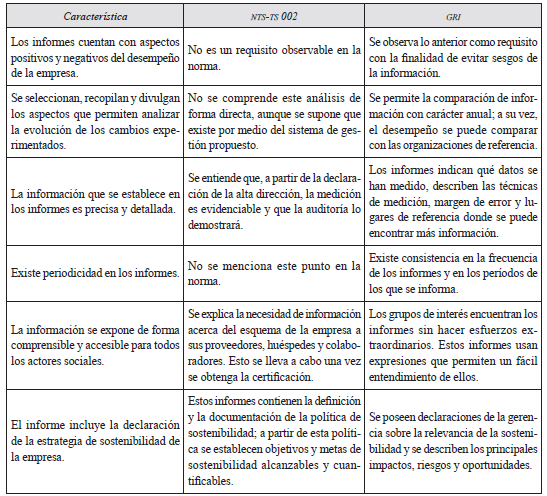 Igualmente, la Guía requiere como requisito para la gestión de la responsabilidad social la participación de los actores durante todo el proceso, mientras que la Norma solo considera informar a ellos como requisito de certificación. Dichos aspectos se ponen en evidencia en los procesos de elaboración de los informes que cada organismo comprende. Comparativamente, la Norma basa su análisis en la competitividad y calidad del servicio prestado, por medio de la implementación de un sistema de gestión, mientras que la GRI se fundamenta en principios que tienen pretensión de objetividad y bajo los cuales se reconoce a determinados actores sociales clave para el negocio (Téllez, 2015).