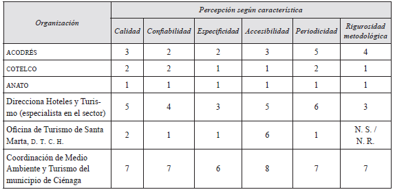 En este trabajo se quiso conocer el grado de importancia que las autoridades locales y departamentales le otorgan al hecho de contar con un sistema consistente de estadísticas turísticas. Por este motivo, en la entrevista aplicada a los representantes del sector público de las dos ciudades principales del departamento del Magdalena6 se indagó acerca de la percepción que ellos tienen en lo que concierne a este tema. Ellos coincidieron en que contar con un sistema de estadísticas turísticas consistente y riguroso es esencial y de altísima importancia para la toma de decisiones de política pública sectorial. Algunas de las razones en las que se basa esta afirmación son: