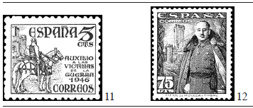 La euforia del triunfo nacionalista en abril de 1939 fue también la victoria de una cierta visión de España. El franquismo se instaló en el poder, y con él un cúmulo de imágenes filatélicas de peso simbólico: religión, hispanidad, casticismo y castellanismo, y con este último, castillos, evidentemente.