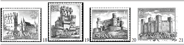 El siguiente estudio revela una visión de la estampilla en su rol de representación del edificio insignia del paisaje español: el castillo. No se trata de un estudio específico ni profundo del marketing turístico materializado en esta construcción. Se trata del testimonio de cómo este elemento patrimonial ha tenido un tratamiento particular por medio de la estampilla, hasta convertirse de una cierta manera en 'marca' nacional.