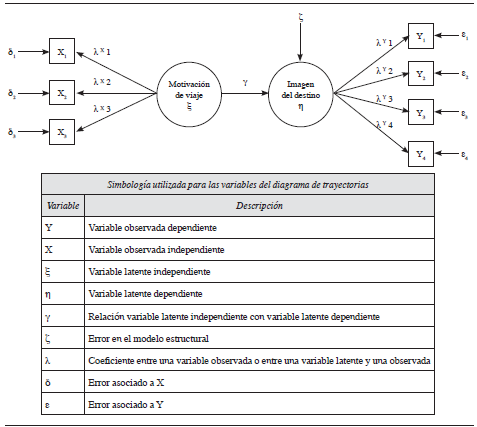 Este estudio propuso en su metodología el empleo de la técnica de ecuaciones estructurales para contrastar un modelo causal ajustado por mínimos cuadrados parciales (PLS) con la intención de evidenciar la relación causal entre la motivación de viaje y la imagen del destino. Así mismo, un análisis de componentes principales permitió identificar los elementos constituyentes de cada una de las variables de estudio.