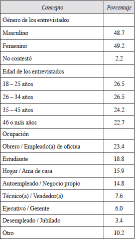 Dado que la afluencia turística a la ciudad en el mismo periodo del año anterior (2013) ascendió a 27 170 turistas, se calculó una muestra de 379 casos para asegurar un nivel de confianza del 95 % y un margen de error del 5 %. El requisito para participar era ser turista de ocio con al menos una noche de pernoctación, tener más de 18 años y hablar español. La recogida de datos se realizó entre el 14 y el 20 de abril de 2014, correspondiente al periodo vacacional de Semana Santa, en los principales puntos de afluencia turística de la ciudad de Monterrey, México. Se realizaron 1296 entrevistas. Luego de concluido un proceso de depuración para descartar cuestionarios inconsistentes o incompletos, la muestra se redujo a 649 casos válidos.