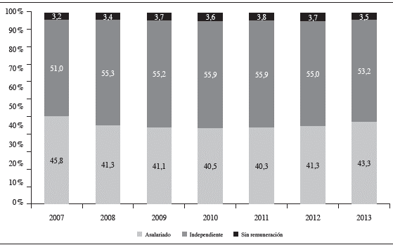 Los denominados trabajadores independientes corresponden a las posiciones ocupacionales trabajador por cuenta propia y patrones o empleadores.