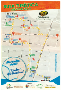 Esas acciones denotan fortalezas turísticas de la "Ruta Aracataca", como son la operación de los principales atractivos a cargo de Fundepalma como parte de su política de responsabilidad social, lo cual implica formar y contratar a actores locales como orientadores turísticos, abrir sus espacios museográficos como escenarios de formación o promoción cultural, ofertar los trabajos de los artesanos locales en las vitrinas comerciales en cada atractivo, no cobrar a los visitantes por el ingreso a estos sitios en épocas turísticas altas ni bajas y el uso de estrategias de promoción tales como vallas, murales y la ruta impresa gratuita (verfigura 1), de modo que desde Aracataca se oferte una "alternativa de turismo y desarrollo sostenible del país" (Fundepalma, diciembre de 2017). Con menor impacto social, la Universidad del Magdalena administra la Casa Museo y garantiza el ingreso a este de forma gratuita, contrata profesionales administrativos y culturales, también forma y fomenta la guianza entre los bachilleres de la localidad. El papel de la alcaldía solo se limita al funcionamiento de las bibliotecas locales que rememoran a Gabo y promueven la lectura de su obra.
