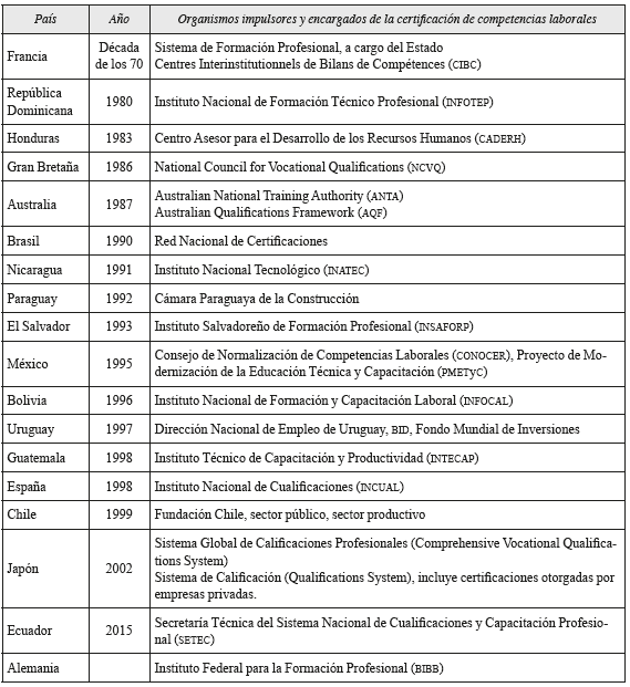 Las actividades declaradas en los puestos de trabajo fueron relacionadas con las competencias laborales que se certifican en Ecuador, España y México (vertabla 3); con esta base se construyó el marco de competencias en sus dos dimensiones: ocupacional y personal.