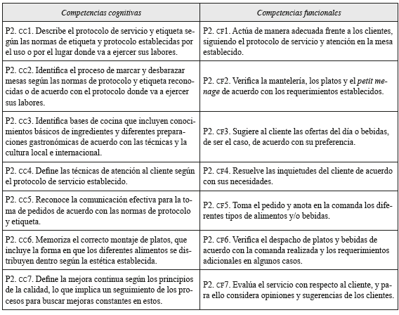 Por lo expuesto, las competencias aquí estudiadas están formadas por dos dimensiones. La primera está compuesta por la dimensión de las competencias conceptuales -es decir, aquellos conocimientos propios de la disciplina de los servicios- y las competencias operacionales -las habilidades funcionales técnicas predictoras de un buen desempeño laboral-.