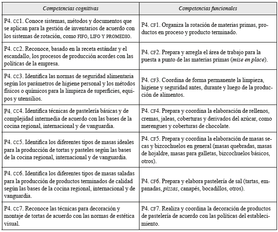 Puesto pastelero (P4). Las actividades declaradas comprenden preparaciones culinarias relativas a la pastelería-repostería, elaboración de recetas estándar e innovación de postres.