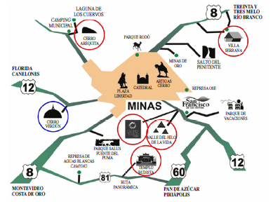 El presente artículo se focaliza en el análisis de la dimensión temporal de la práctica del "turismo espiritual" que se desarrolla actualmente en la zona suburbana y de adyacencia de la ciudad de Minas, departamento de Lavalleja (Uruguay) (figura 1). Si bien las diferentes modalidades en las que se manifiesta el turismo espiritual en dicho departamento empezaron a surgir a comienzos del siglo XXI, en el despliegue del relato de algunos de los productos turísticos el "pasado" se vuelve presente bajo determinadas circunstancias. Esto significa que en ciertas situaciones las diferentes temporalidades que coexisten de forma inconexa vuelvan a conectarse durante la trama de la narrativa turística. Tal peculiaridad se desprende del trabajo etnográfico, del análisis discursivo de los relatos y de las entrevistas en profundidad, y constituye la plataforma común de los productos turísticos.