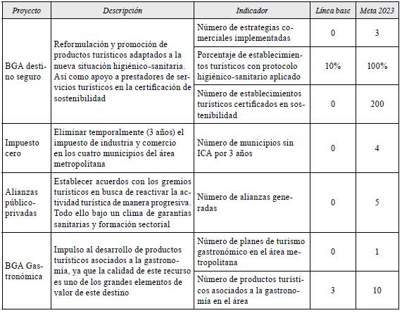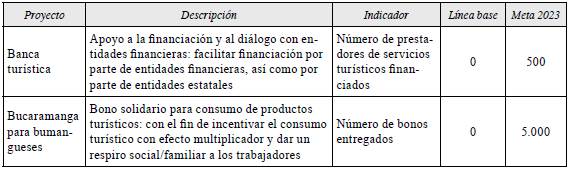 2. Estímulos y aceleración de la recuperación: ofrecer estímulos para la recuperación a mediano plazo del sector turístico del área metropolitana de Bucaramanga (tabla 10).