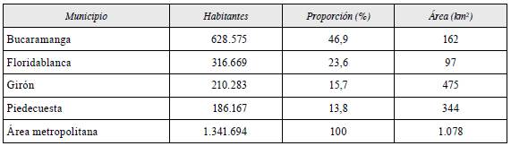 Dado que la población total del departamento de Santander es de 2.380.775 habitantes, en el área metropolitana de Bucaramanga vive más del 50% de los santandereanos, 94% de ellos en el casco urbano y el 4% restante dispersos en las zonas rurales (tabla 2).