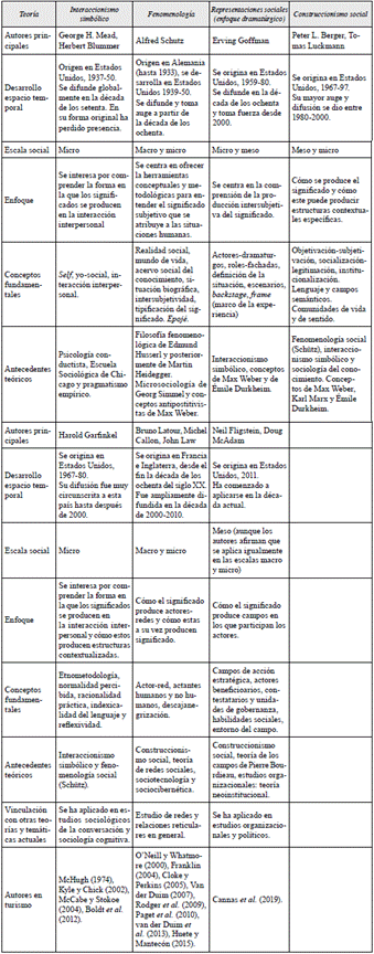 Sin duda, esta no es una tarea sencilla; sería improbable su consecución en un solo artículo, no obstante, es posible hacer aportaciones mesuradas, acotadas hacia ello. Con esta idea en mente se desarrolló el presente texto, con el objetivo concreto de presentar de manera esquemática las teorías sociales con perspectiva interpretativa que han influido en mayor medida en la investigación en turismo, sus fundamentos epistemológicos, algunas de sus particularidades que les caracterizan y una selección de los principales trabajos que han inspirado en el campo de la investigación del turismo.
