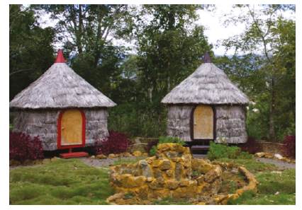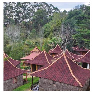 Las "casas amerindias" (figura 4) tienen capacidad para 16 personas. Estas son dormitorios que imitan la forma de las chozas indígenas y se encuentran agrupadas aparentando un pequeño poblado tribal. "La intención del diseño ancestral de estas casas es generar un ambiente aventurero, de conexión con la naturaleza y de reflexión", aseguró la gerente del hotel (Rodríguez, 2019). Así mismo, tanto la gerente como los tres trabajadores entrevistados destacaron que estas instalaciones presentan características que las hacen especiales para brindar bienestar a los huéspedes, como son el aislamiento electromagnético, que permite darle un descanso al organismo del efecto que tiene la radiación electromagnética en el sistema endocrino y prevenir las posibles patologías asociadas con estas radiaciones.