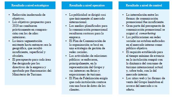Hubo falta de interrelación entre las formas de comunicación promocional (figura 4), así como insuficiencias en la comunicación interna de dicho departamento. Las instalaciones hoteleras de la organización publicaban información de forma aislada, sin previa supervisión del especialista, esto afectó en mayor medida la comunicación en redes sociales.