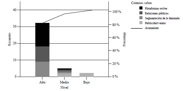 Con la intención de agrupar la información obtenida de las entrevistas a especialistas sobre la necesidad de perfeccionamiento de la comunicación promocional del Grupo, se presenta la figura 5, enfocada en el segmento de los millennials. El grupo de criterios, vinculados a la caracterización de la situación, se tabularon y analizaron mediante paretos apilados para determinar la necesidad de perfeccionamiento de la comunicación promocional, con miras a su enfoque al segmento, lo cual permitió destacar los puntos vitales sobre los triviales.