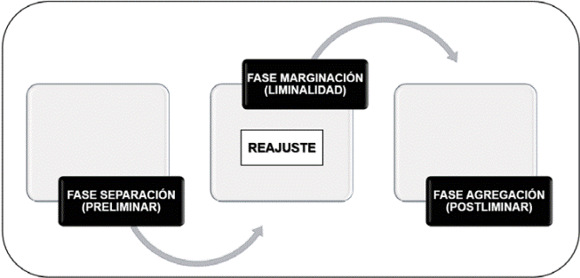 Preliminar, que es un comportamiento simbólico por medio del cual se expresa la sepa ración de la persona o de un grupo, bien sea de un punto anterior fijo en la estructura social, de un conjunto de condiciones culturales, un "estado" o de ambos.